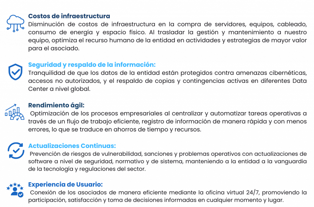 Cuente con una de las mejores herramientas del mercado que le permitirá estar a la vanguardia tecnológica del sector y tomar decisiones confiables para el crecimiento de su entidad, nuestra experiencia al servicio de usted, 25 años en el sector nos convierten en su mejor aliado